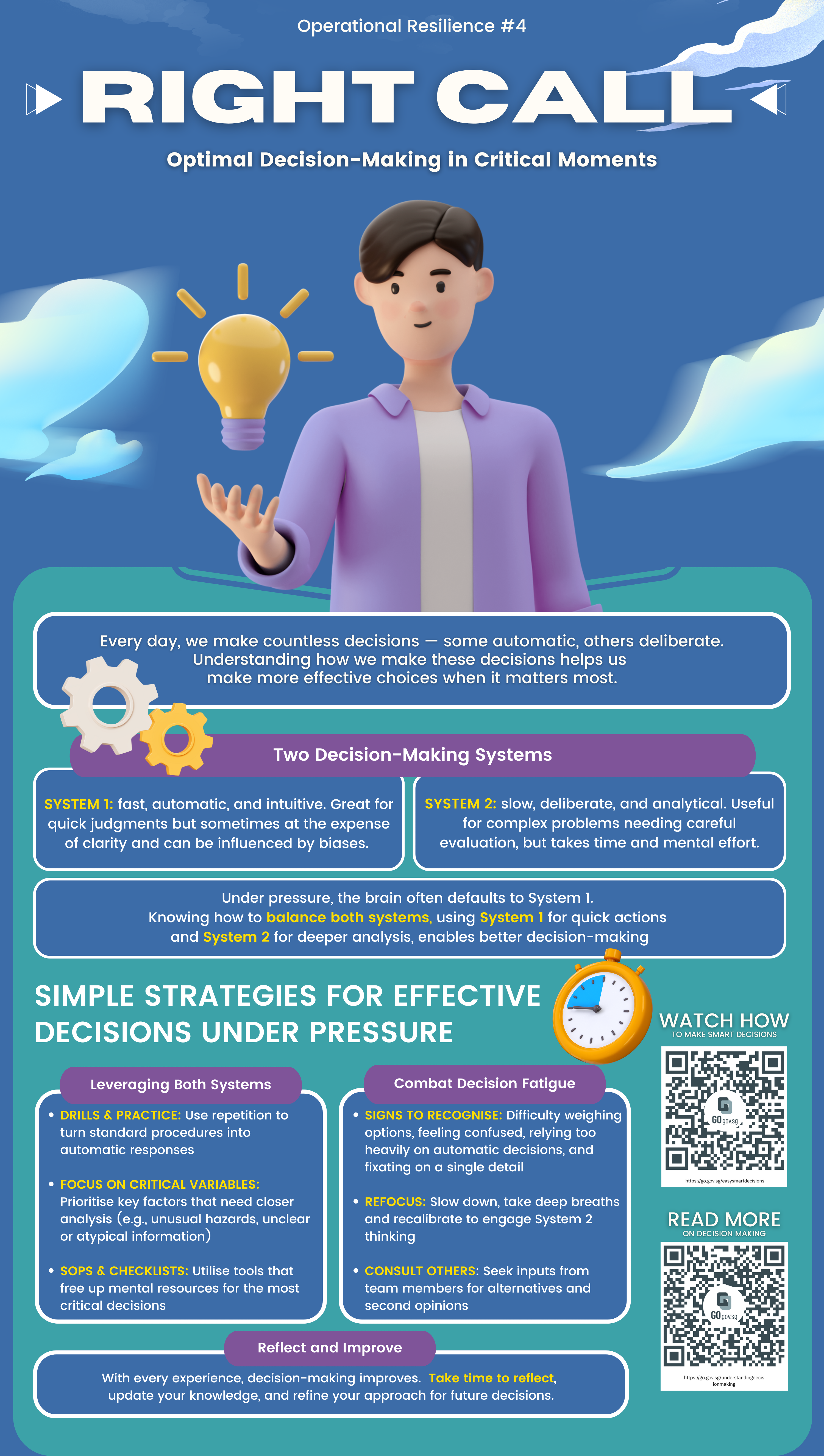 The human brain is a powerful and flexible tool – capable of quickly processing information and generating solutions, while also allowing us to slow down and analyse complex challenges. Understanding how we make decisions can help us perform at our best in critical moments.